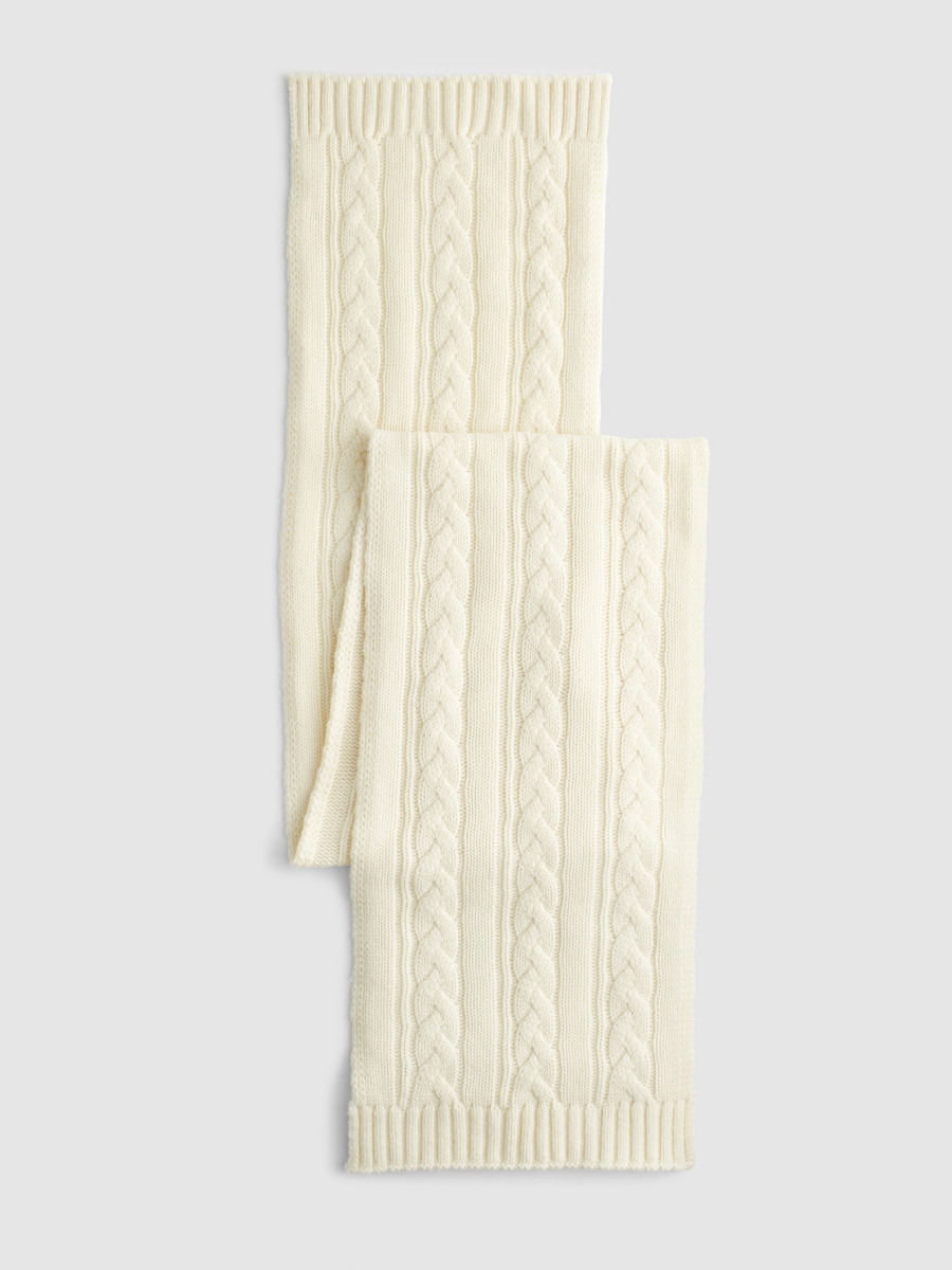Knit from wool with a touch of luxe cashmere, this classic scarf features a chunky cable-stitch pattern. The soft, substantial feel makes it ideal for bundling up on chilly days.